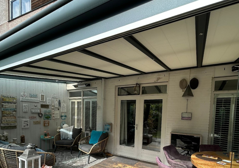 Wist u dat ze een veranda die volledig open kan, ook wel cabrio veranda noemen? We hebben enkele eigenschappen van onze terrasoverkapping uitschuifbaar voor u op een rijtje gezet: